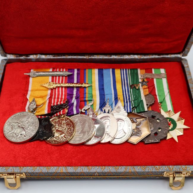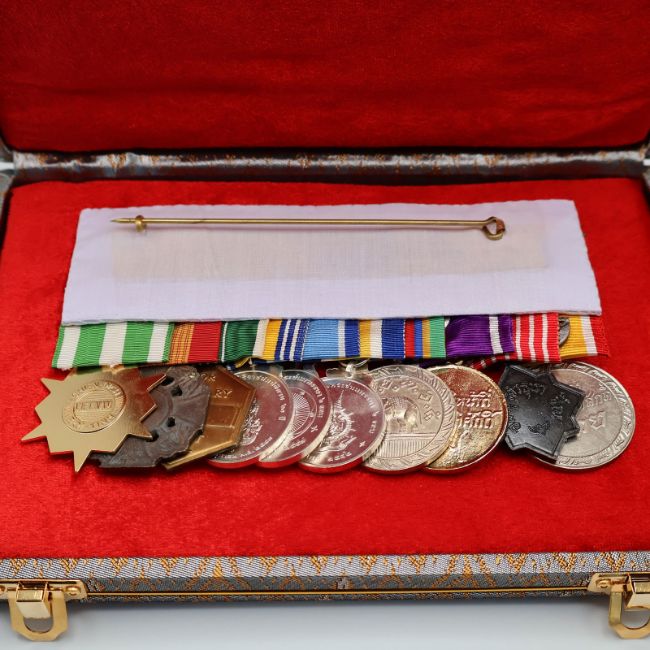 A Thai medal bar from the 2000's for vietnam service, consisting of the following medals: