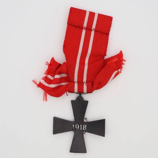 A fourth class Finnish Military Order of the Cross of Liberty, 1918 version. Instituted in 1918 during the Finnish War of Independence to recognize acts of bravery and distinguished military service. The IV Class was awarded to soldiers and officers for merit in combat and contributions to Finland’s fight for independence.